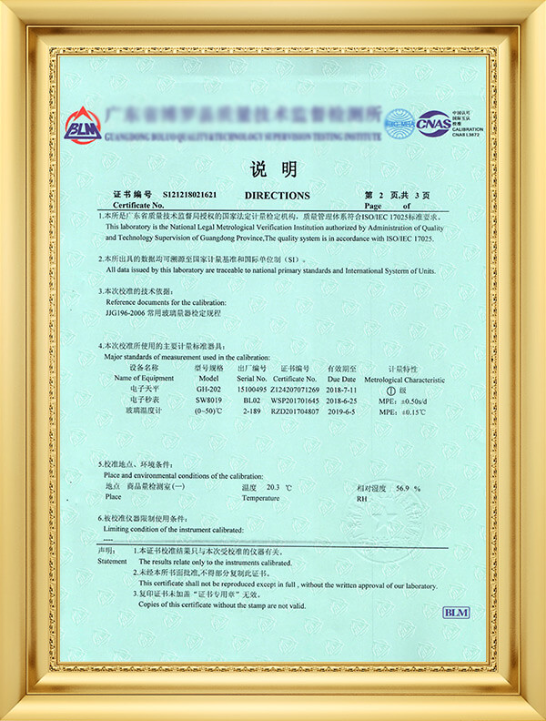 獲廣東省質量技術監督局法定計量授權校準/檢定項目107項