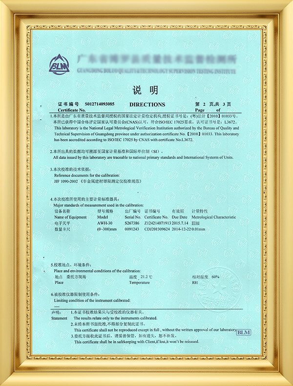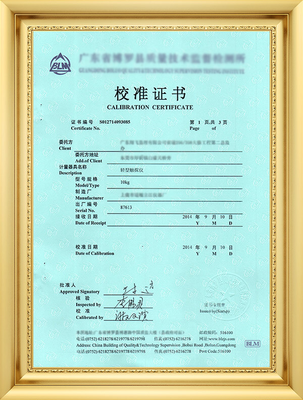 獲廣東省質(zhì)量技術(shù)監(jiān)督局法定計(jì)量授權(quán)校準(zhǔn)/檢定項(xiàng)目107項(xiàng)