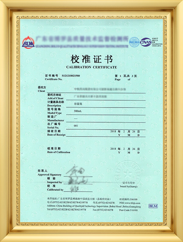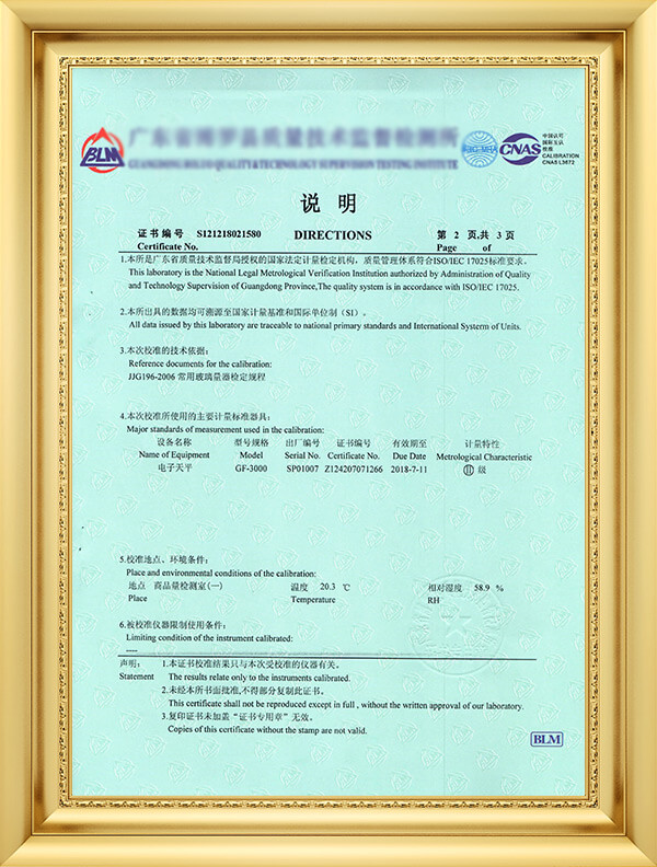 獲廣東省質量技術監督局計量認可授權校準/檢測項目7項